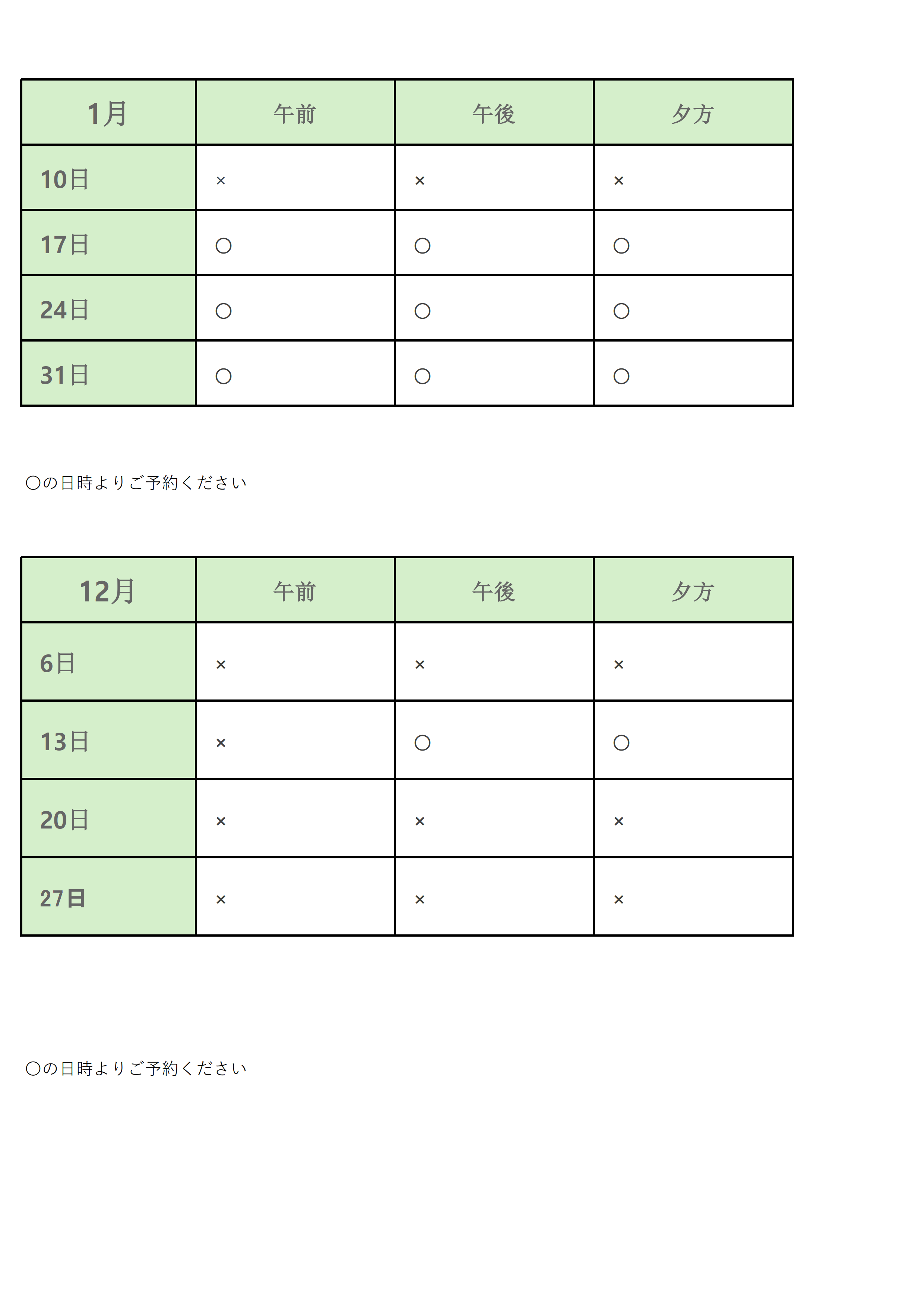 また、カレンダーに表示のないお時間帯でも可能な範囲で柔軟にご対応いたします。